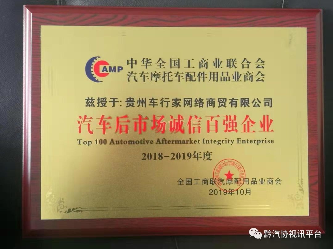 2019年被全国工商联汽摩配用品业商会授予“汽车后市场诚信百强企业”